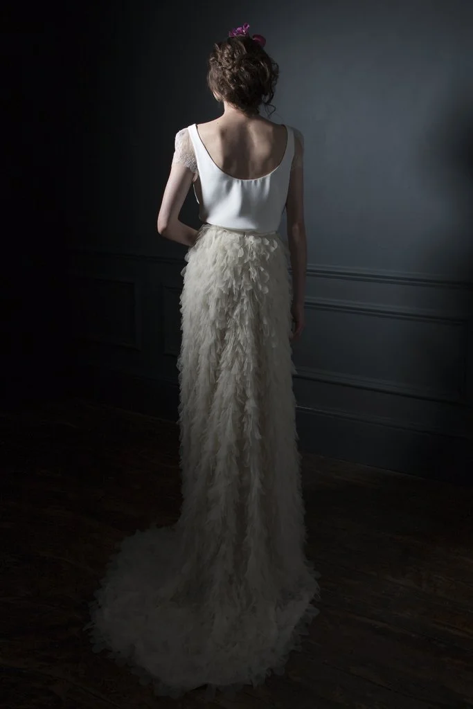 The inspiration for this season was taken from nature, looking at the light floatiness of the dandelion clock, and how the fabrics could be light as a feather. The dresses are always wearable and effortless but still keeping true to the Halfpenny identity, chic and stylish, a true modern bride with her own individual wedding style.