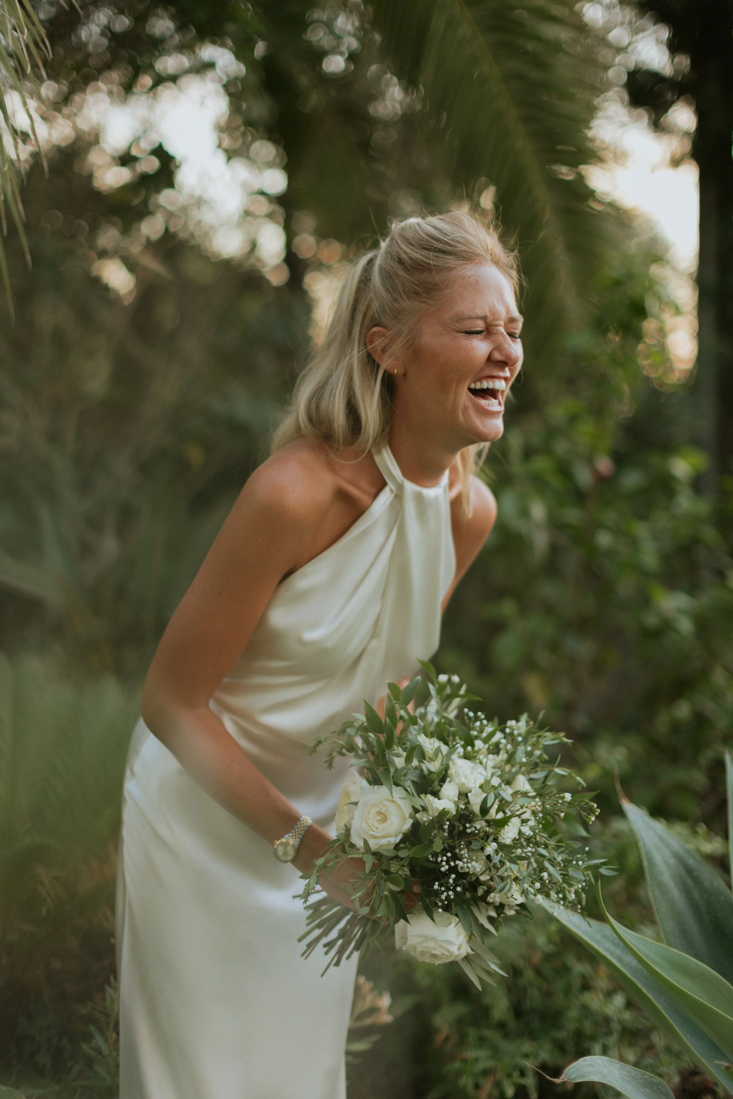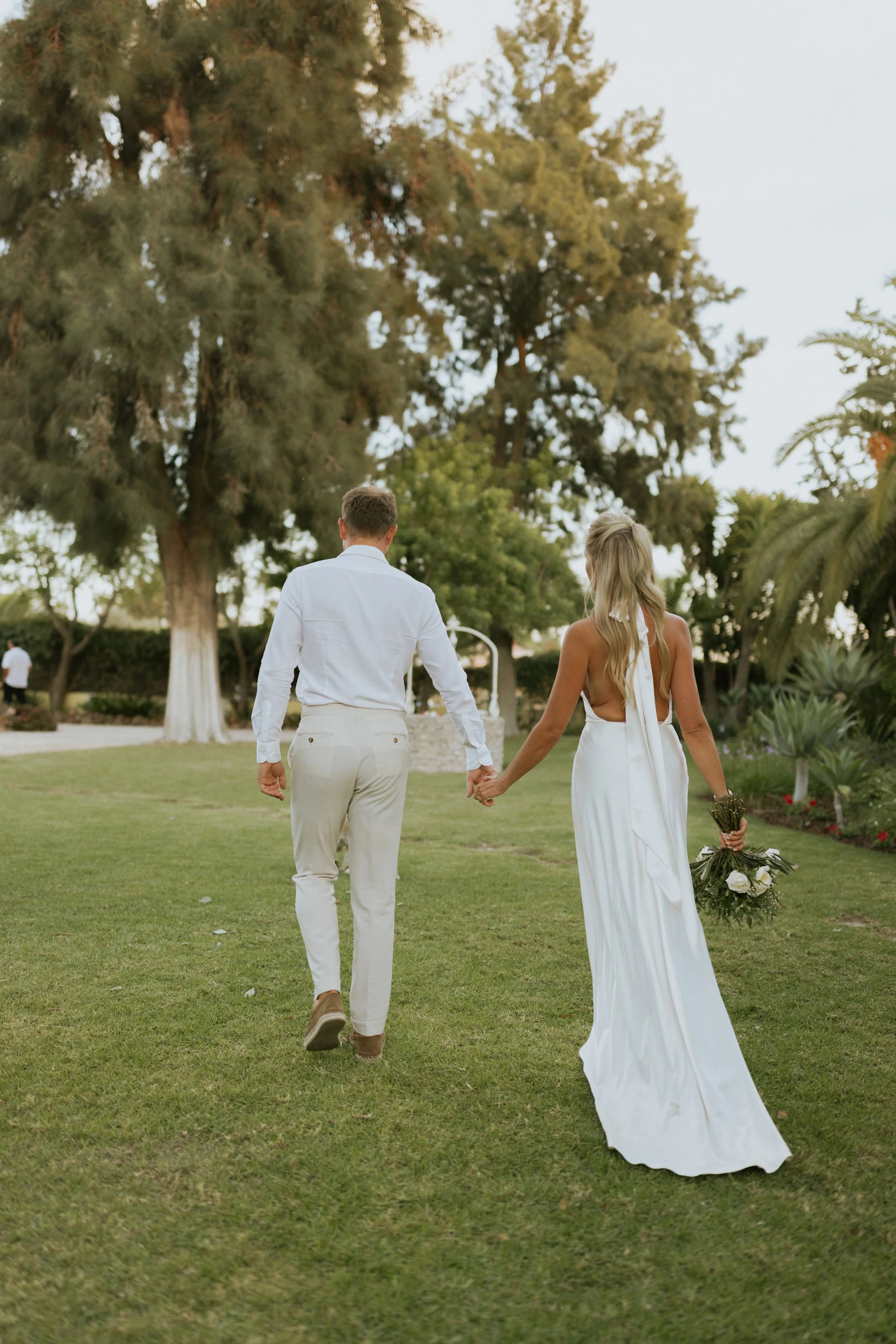 A modern and elegant Halfpenny London wedding gown for a boho summer wedding in Portugal.