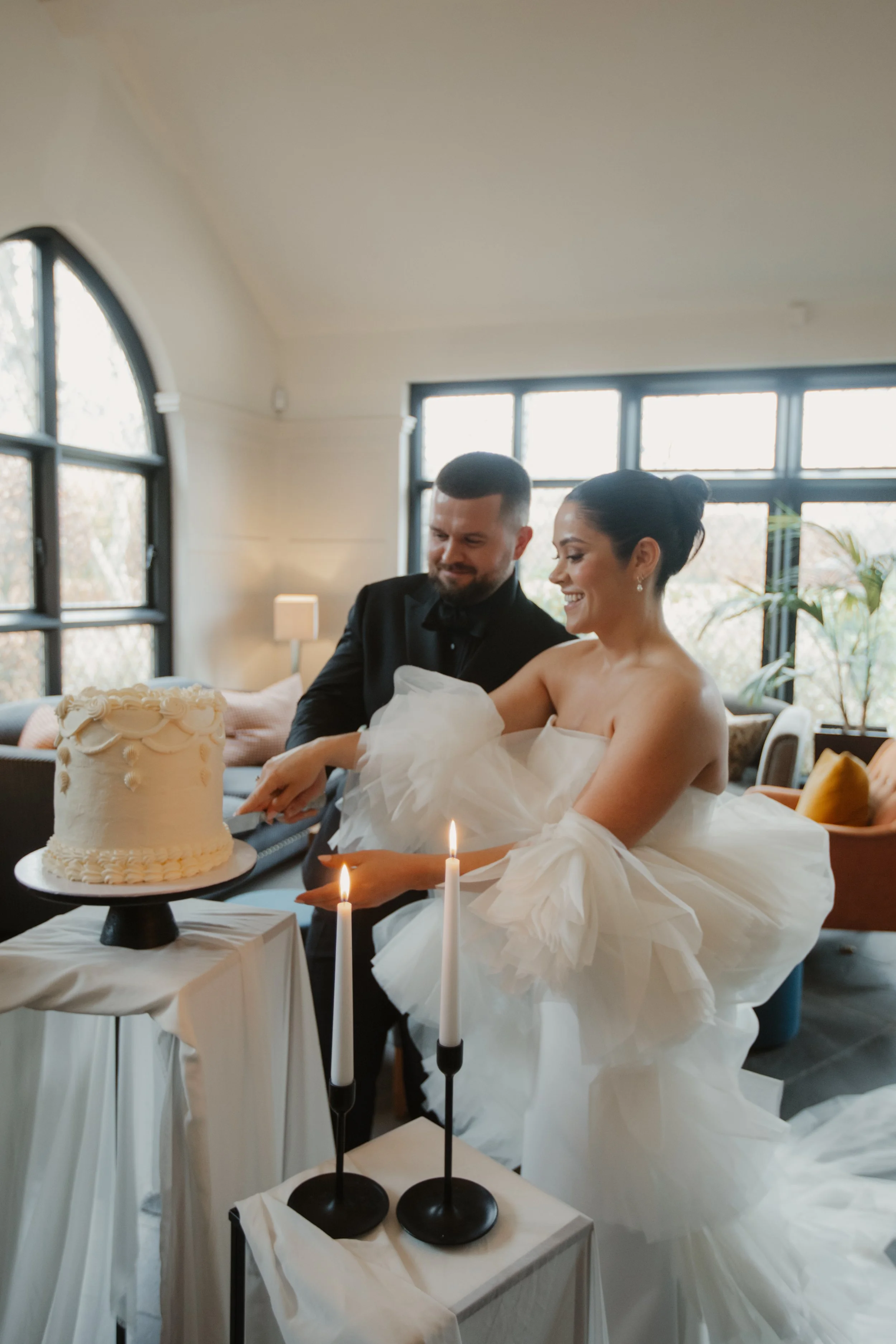 A modern, minimalist celebration layered with romantic detail and personal meaning.