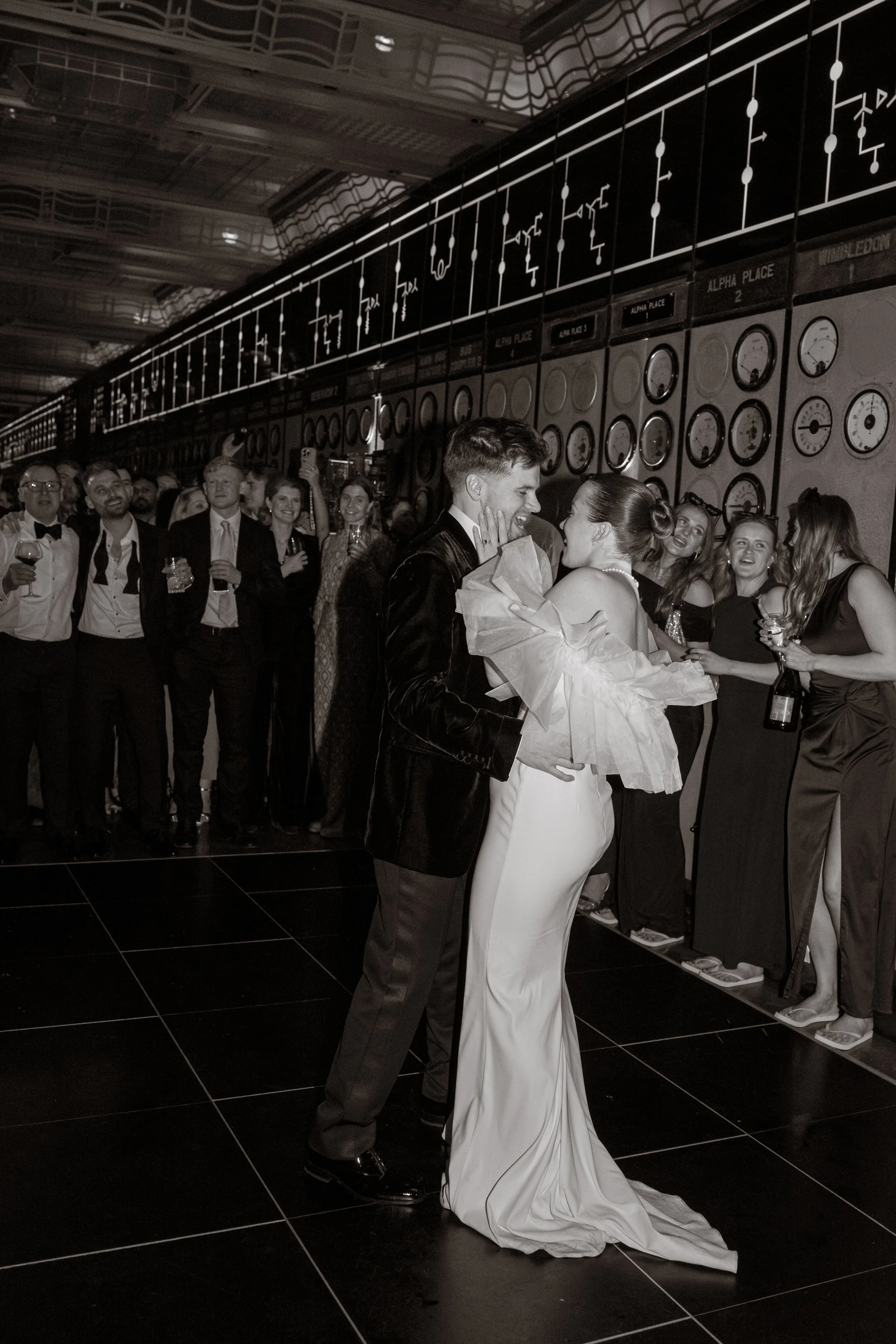 Holly and Billy envisioned a wedding that felt timeless and atmospheric without leaning into anything overtly seasonal. Hosting their reception at Control Room A, Battersea Power Station, they focused on creating a setting that was contemporary.